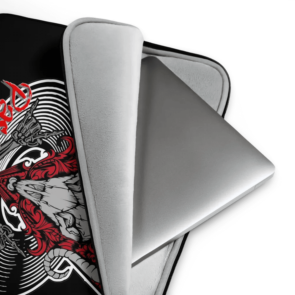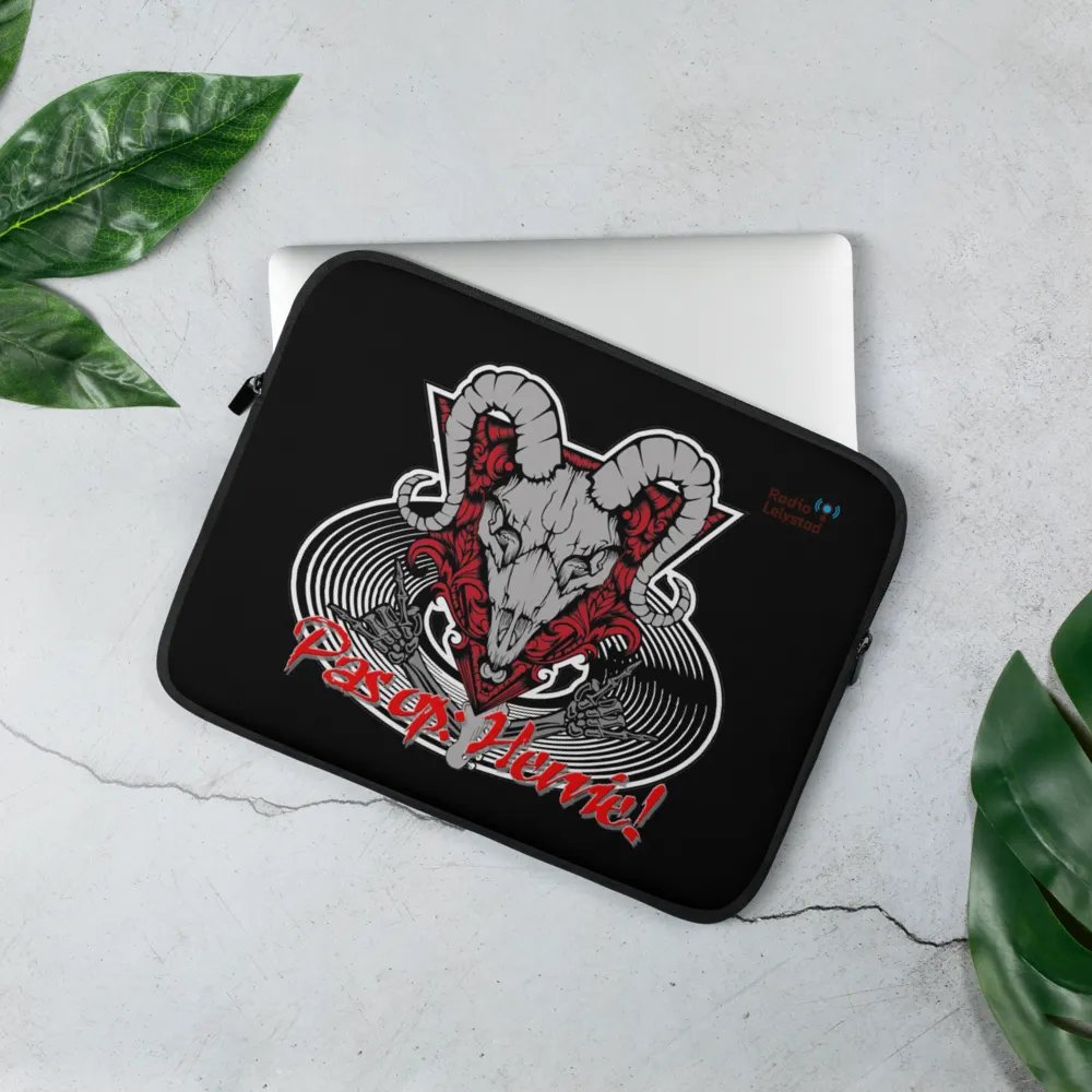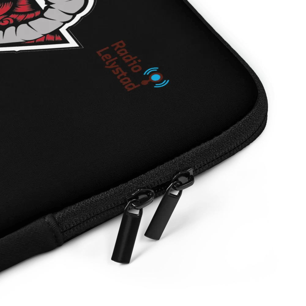 Protect your laptop in style with this lightweight and form-fitting "Pas op: Herrie!" laptop sleeve, essential for busy laptop owners. With a padded zipper binding and a soft faux fur lining, it ensures your laptop remains scratch-free while you're on the move